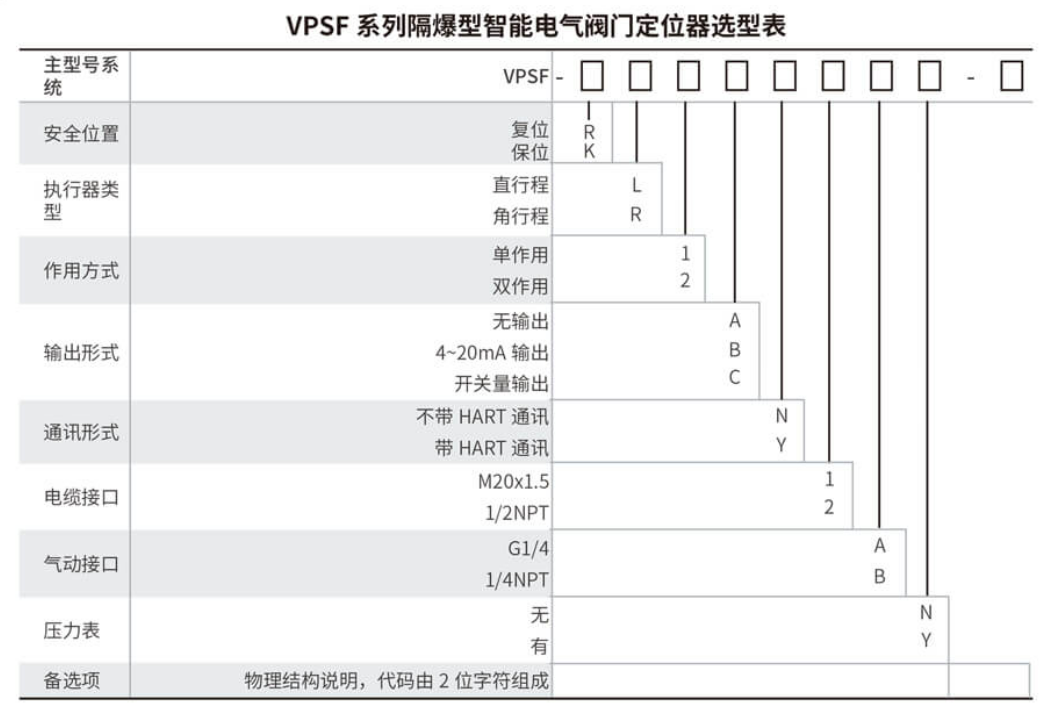 1.VPSF 系列隔爆型智能电气阀门定位器用于气动直行程或角行程执行机构的控制。